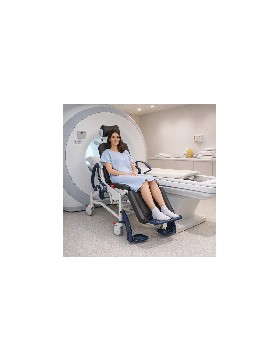 Conçu pour s’intégrer naturellement dans le parcours de prise en charge, il facilite les transferts, les phases d’attente et la préparation à l’examen tout en garantissant stabilité et sécurité. Sa capacité de charge jusqu’à 150 kg et sa structure renforcée autorisent une utilisation quotidienne intensive en service d’imagerie.